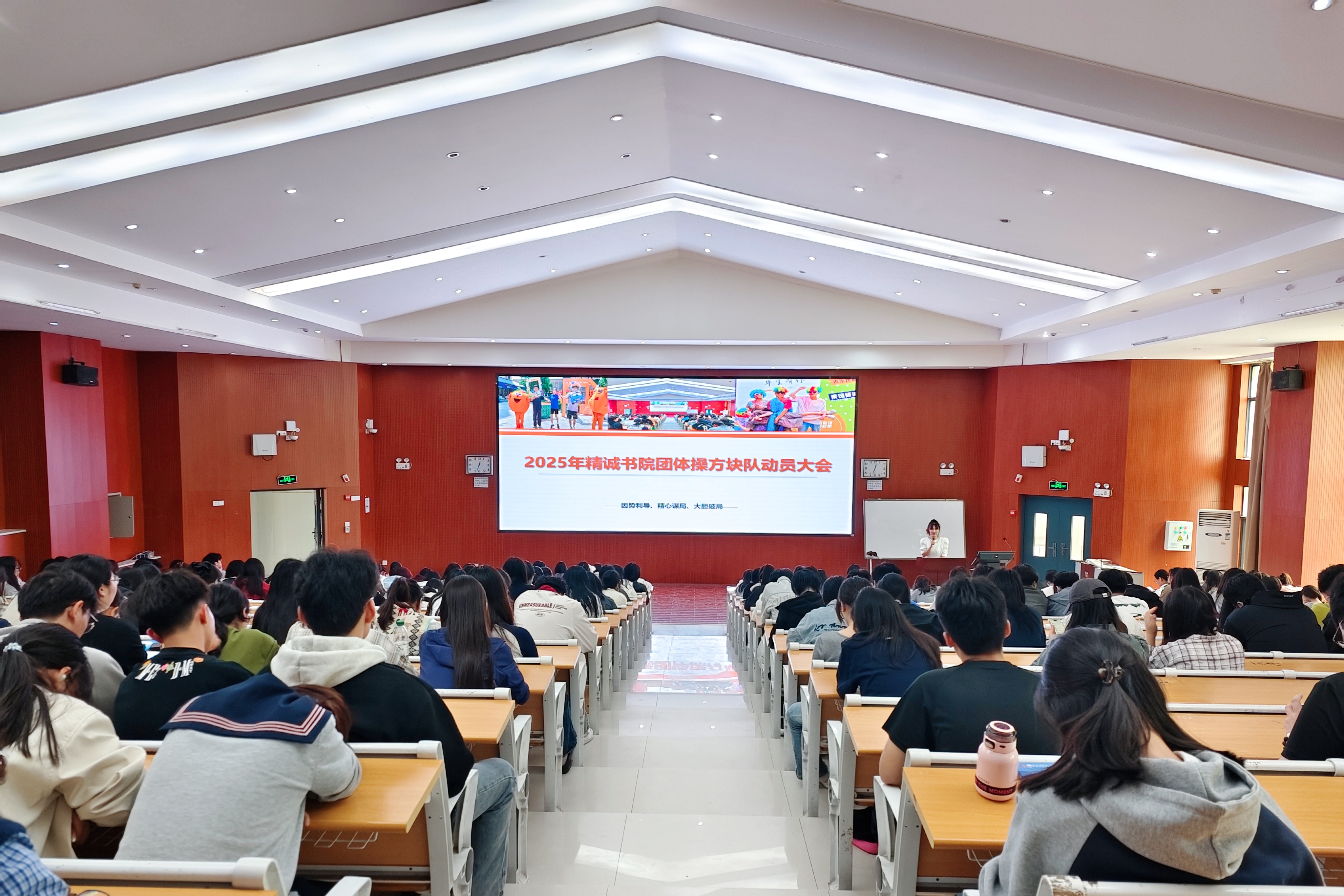 4月9日中午,精诚书院在谨学楼D2教室召开特色方阵和团体操动员大会。精诚书院院务主任金潇、辅导员郝裴、行政专员朱家乐、相关负责学生干部及500余名参演学生参加会议。