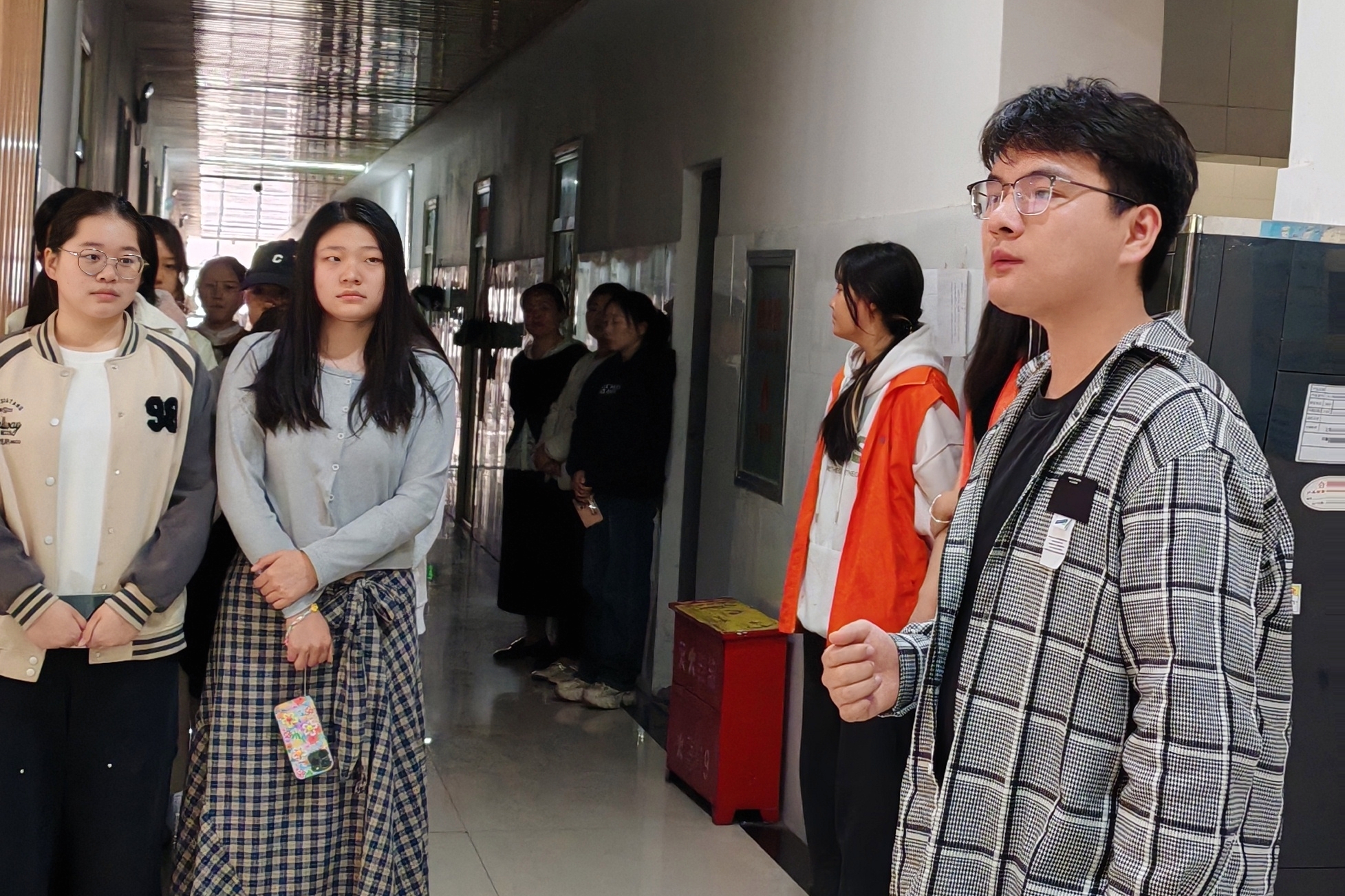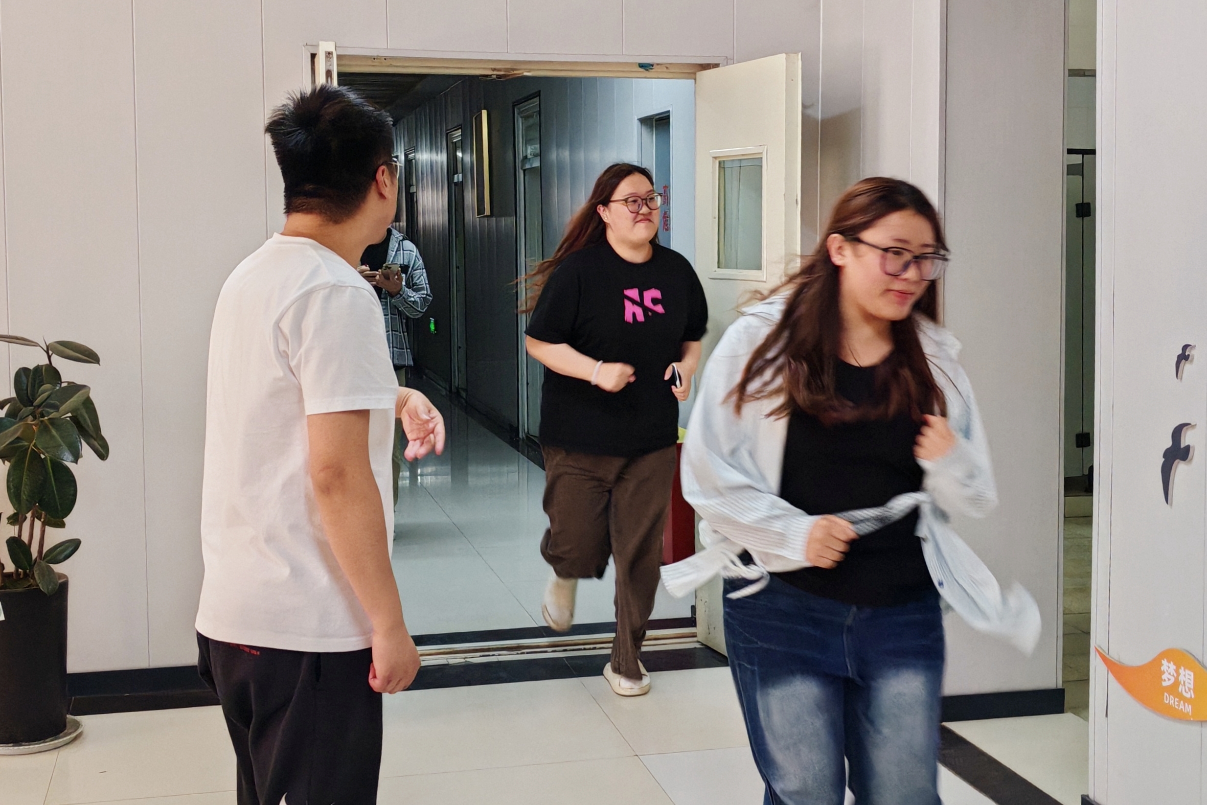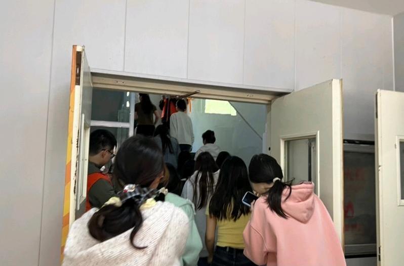 随着张新演练指令的下达,紧张有序的防汛演练正式拉开帷幕。模拟场景设定为遭遇强降雨,A-08北一楼面临进水风险,需紧急转移学生并采取防汛措施。接到预警后,书院迅速启动应急预案。教师们第一时间到达A-08楼,组织一楼学生有序向二楼大厅转移。学生们在教师的指挥下,按照预定路线,携带重要物品,快速而有序地撤离,整个过程安静且高效。