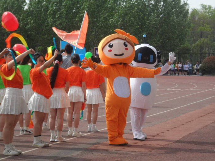 精诚书院方阵以“萌趣玩偶+舞蹈叙事”惊艳登场。憨态可掬的“小橙子”与“豆包”幽默互动,带领120名医学生与19名教职工高呼“豫北健儿,决胜赛场!精诚所向,势不可挡!”口号入场。随后,8名学生身着巨型书本造型,以《李羲承进行曲》和《奢香夫人》为旋律,将解剖学、影像学等教材内容化为灵动舞步。教师方阵挥舞彩带助阵,形成“书本翻飞、彩带如虹”的视觉奇观。