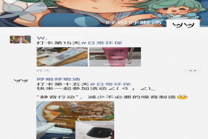 活动围绕“日常环保”“垃圾分类”“资源节约”三大主题设计了10项趣味打卡任务。参与者需通过图文或视频记录环保行为,如坚持自带水杯、践行“无塑料日”、制作垃圾分类手工艺品等。其中“静音行动”与“空瓶回收”等创新任务,将环保理念延伸至噪音污染治理和循环经济领域,引发学生广泛关注。