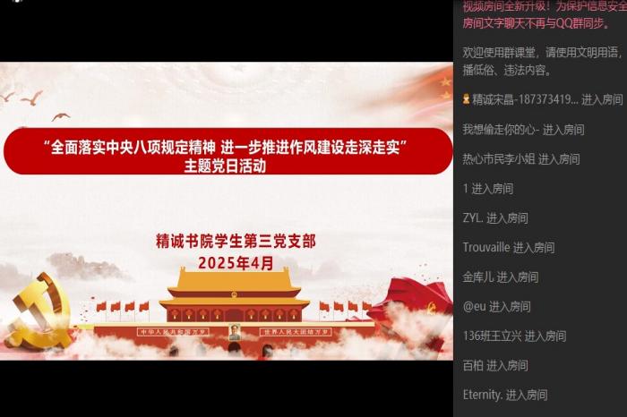 为深入学习贯彻中央八项规定精神,持续推进作风建设,营造风清气正的校园环境,4月19日,精诚书院学生第三党支部开展了“全面落实中央八项规定精神 进一步推进作风建设走深走实”主题党日活动。支部全体党员及入党积极分子参与活动,通过专题学习、交流研讨等环节,切实增强纪律意识和规矩意识。
