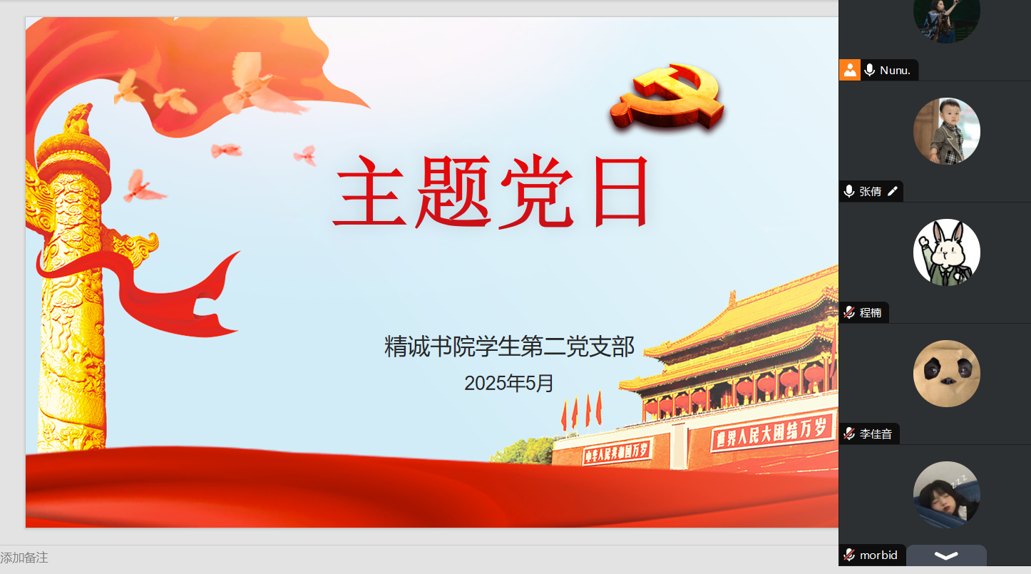 为深入贯彻中央八项规定精神、传承五四精神,进一步增强青年党员的党性修养,5月19日晚,精诚书院学生第二党支部开展“赓续五四精神守初心 贯彻中央八项规定精神担使命”主题党日活动,会议由党支部书记张倩主持,全体学生党员参加。