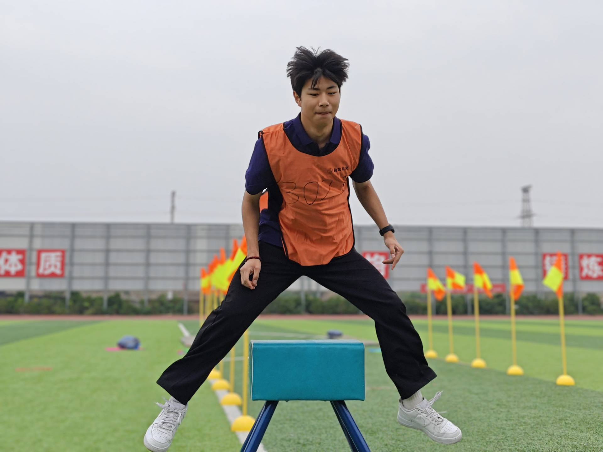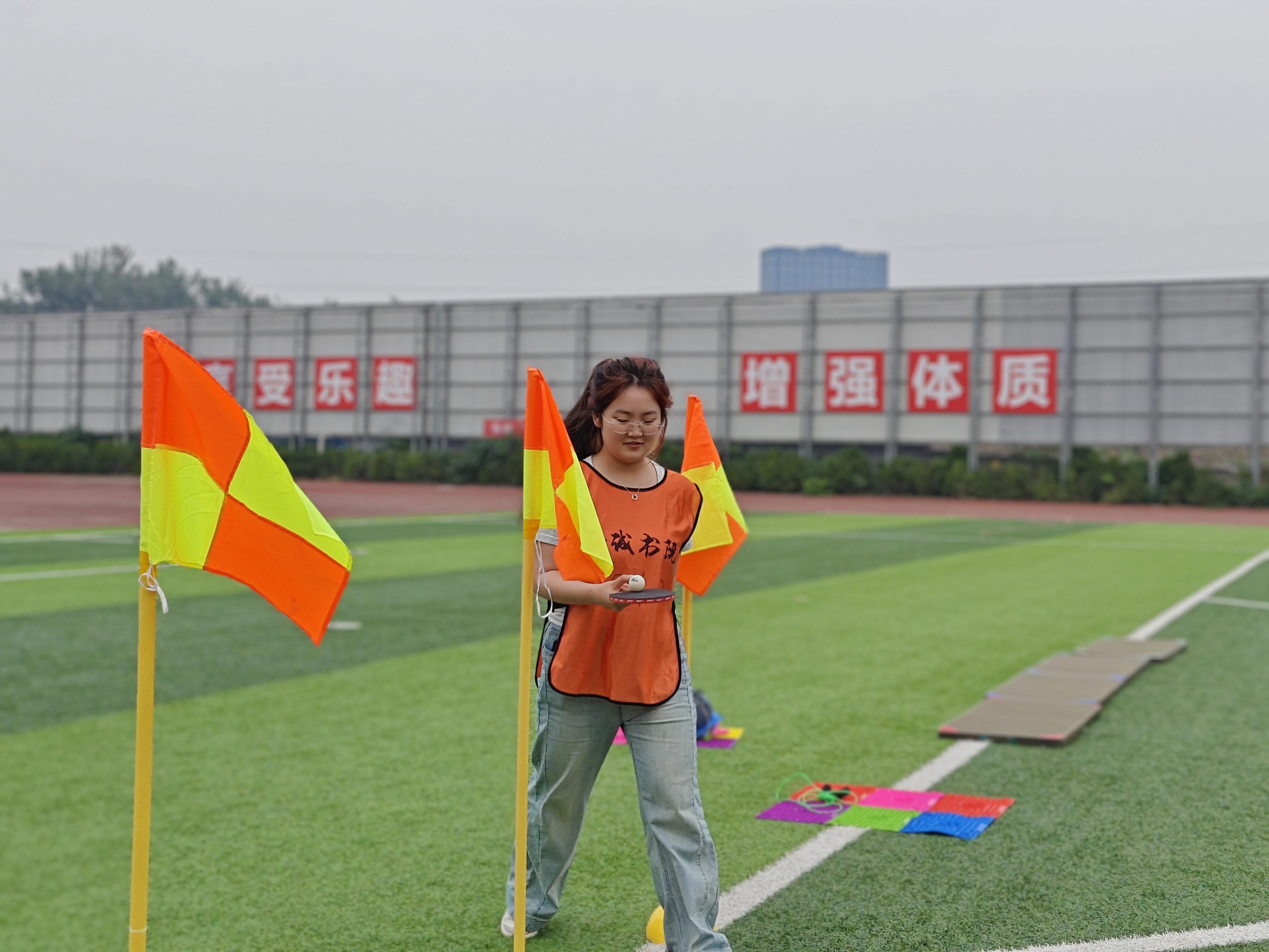5月23日正午,风雨操场变身“青春修炼营”,一场别开生面的学生干部特训正在火热进行。在“负重前行”关卡,只见队员们像特种兵般贴地爬行,胸前的物资箱随着动作哐当作响;转到“足履实地”区域,此起彼伏的尖叫声中,参赛者龇牙咧嘴地在指压板上蹦跳;“稳中求进”区化身高难度杂技现场,乒乓球在球拍上跳着危险的华尔兹,引得围观同学不断发出“稳住!别抖!”的提醒。最后的“步步为营”就像真人版跳房子游戏,彩色圆圈间跃动的身影,在阳光下划出青春的弧线。在这片欢声笑语的训练场上,学生干部们用汗水绘制成长蓝图,用协作诠释责任担当,这场别开生面的“青春修炼”不仅锻炼了体魄,更熔铸了团队之魂。