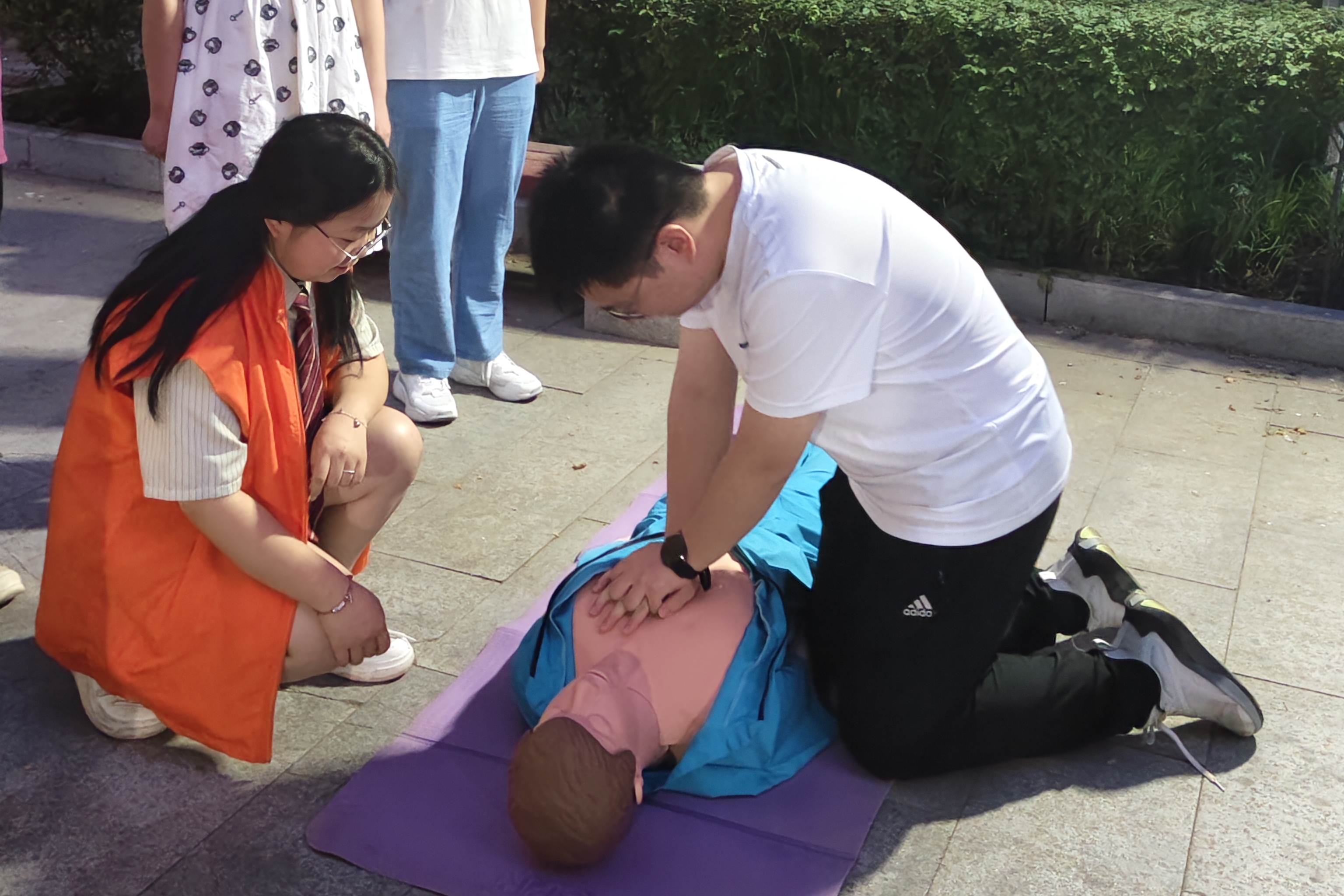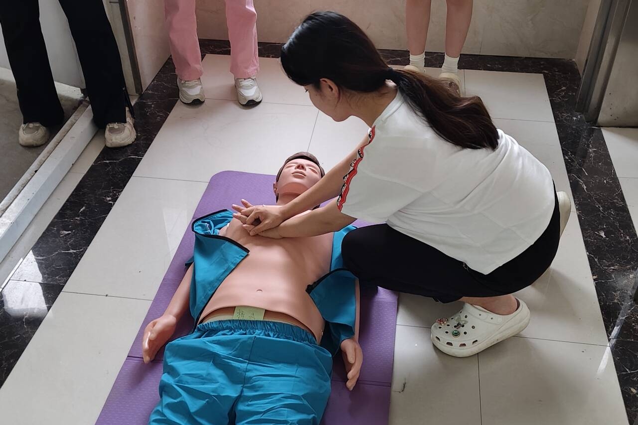 5月16日起,精诚书院救护小队将课堂搬进学生宿舍。在精诚书院园区广场,一场别开生面的“剪刀石头布”急救游戏正在进行。获胜者需要为“伤员”进行心肺复苏按压,围观同学不时发出善意的笑声:“你的胸口按压位置不对哦!”而在高层公寓楼梯间,一场模拟突发心脏骤停的演练正在上演,队员们用模拟假人指导同学们完成“判断-呼救-施救”的全流程。