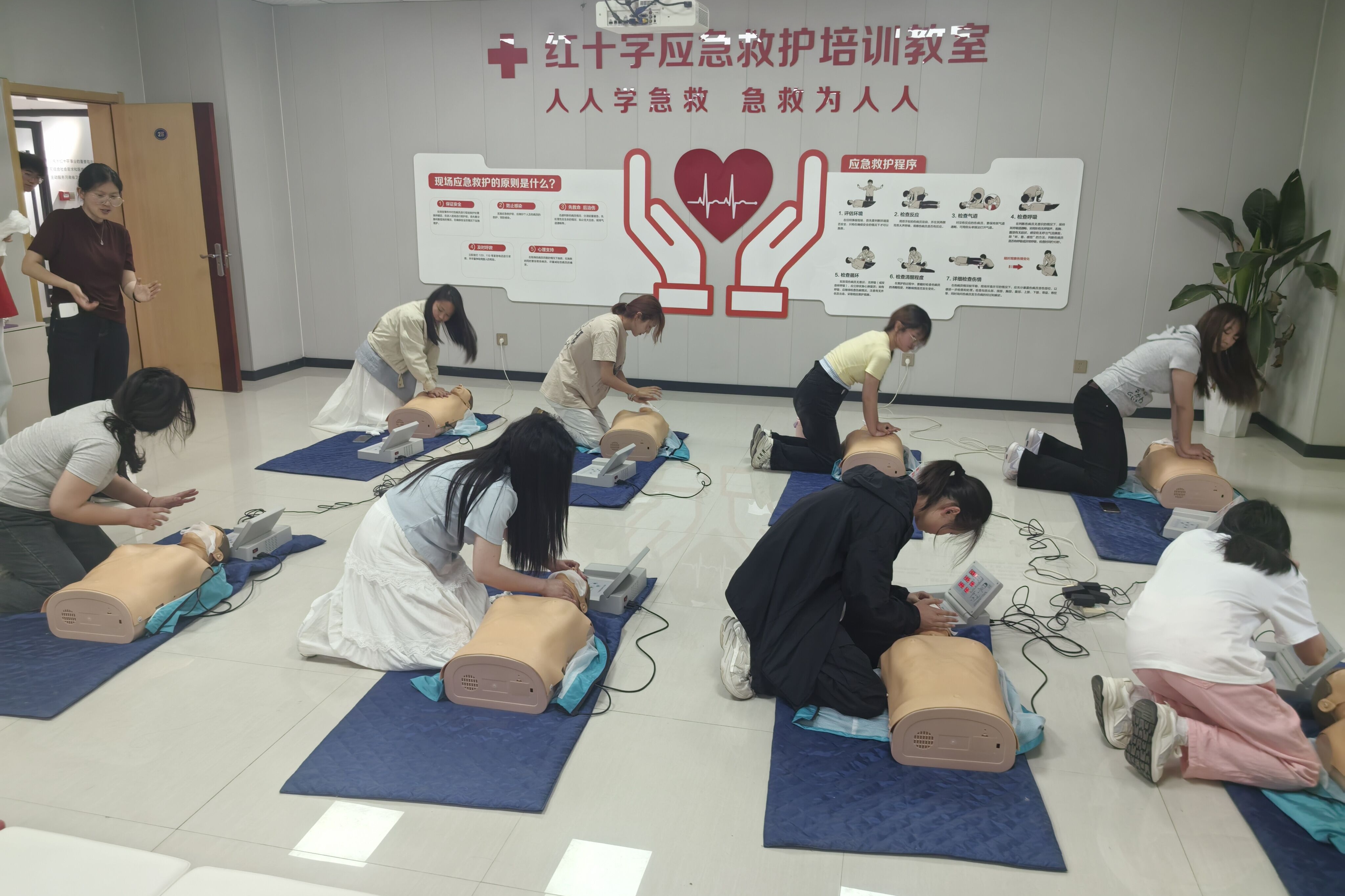 5月12日,闻德礼堂红十字教育基地内,六十余名救护队员正在进行严格的心肺复苏术考核。“注意节奏!01、02、03...”培训老师手持计时器,目光如炬地观察着每位学员的动作。模拟人连接的监测仪实时显示着按压深度和频率数据,队员们额头上的汗水在灯光下闪闪发亮,却无人停下手中的动作。