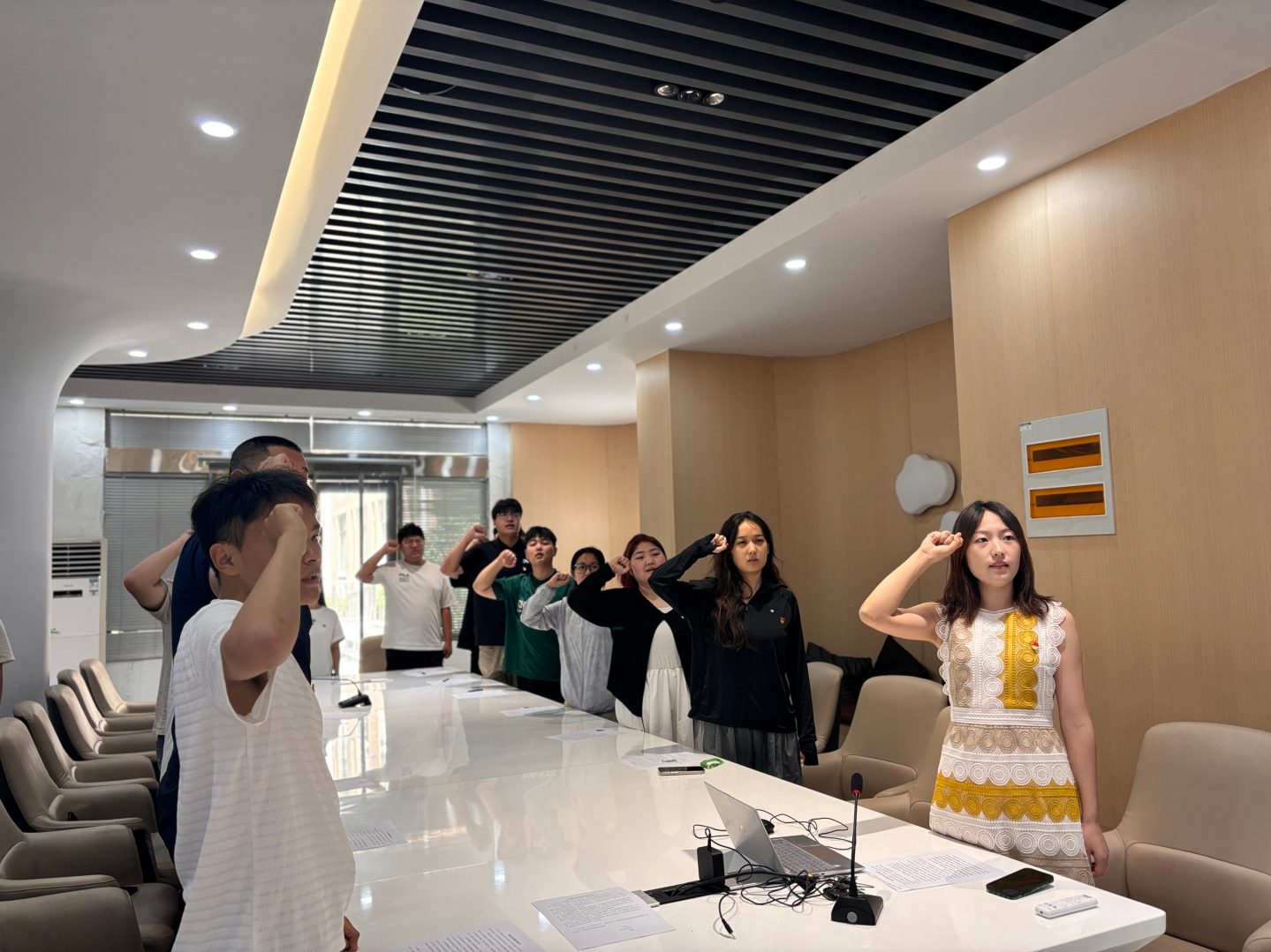 会议在肃穆氛围中拉开帷幕。首先由党务专干齐盼君发表开场致辞,向即将踏上新征程的毕业生党员致以诚挚祝福,强调“廉洁是党员的政治生命”,号召大家以清正底色迎接社会考验。随后,全体党员面向党旗庄严站立,在领誓人带领下重温入党誓词。“我志愿加入中国共产党……” 铿锵誓言响彻会场,唤醒了党员们入党时的赤诚初心,也为整场会议奠定了庄重的基调。
