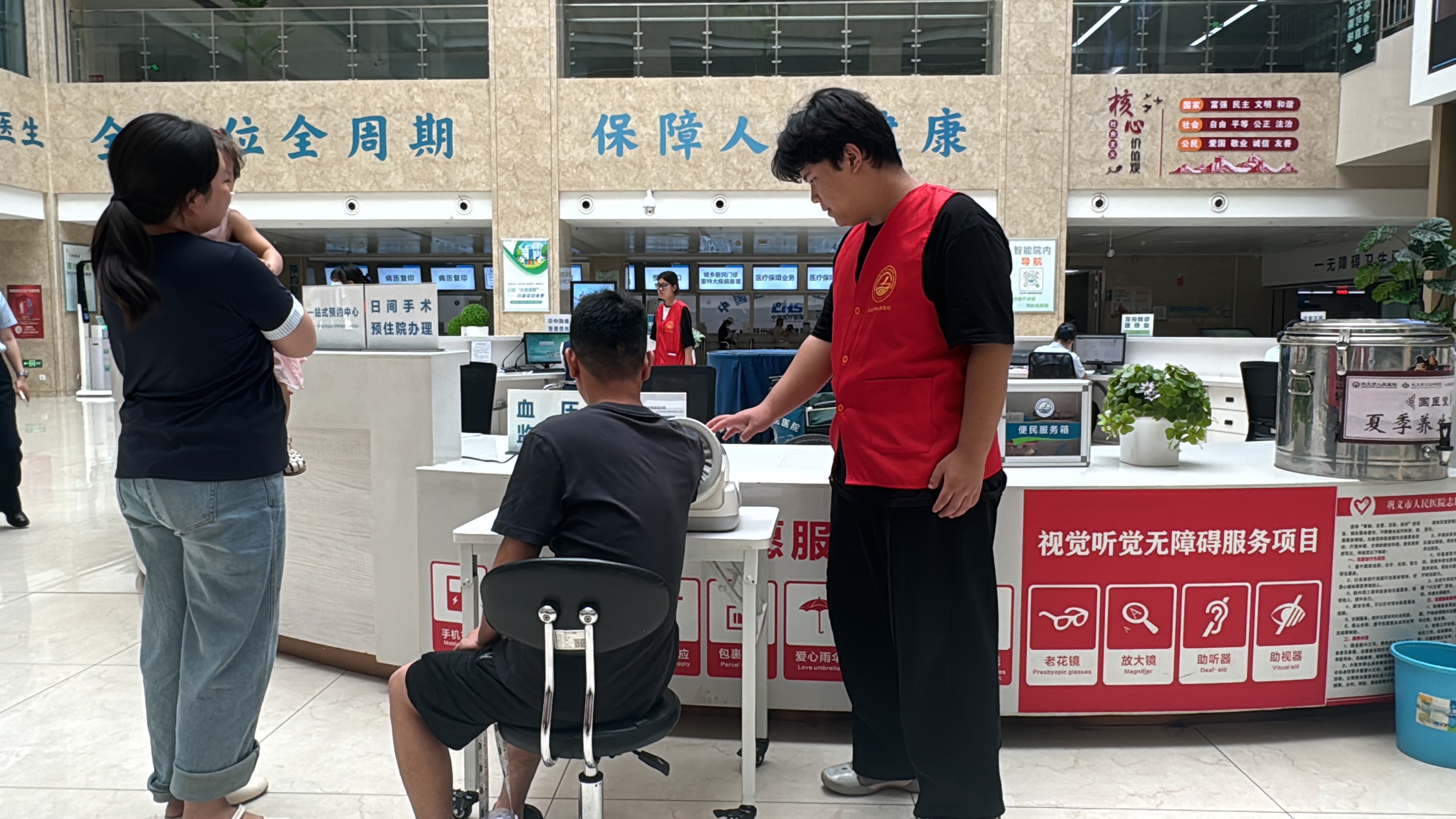 6月18日下午,豫北医学院精诚书院暑期社会实践团在巩义市人民医院开展“红色传承践于医,热心服务暖人心”志愿活动。医学生志愿者们化身“青春医导”,聚焦取药协助、自主挂号指导、血压测量、体质率检测等就医高频场景,以专业服务为患者打造便捷暖心的就医体验。