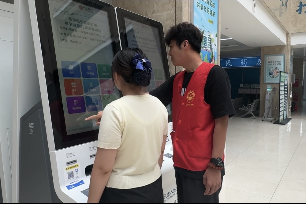 门诊大厅的自助挂号机旁,志愿者们化身“智能引路人”。面对操作生疏的老年患者与初次就医者,他们以“一对一”教学模式,从点击“门诊挂号”按钮到完成扫码缴费,全流程拆解操作步骤,用耐心化解老年人的“电子设备焦虑”。