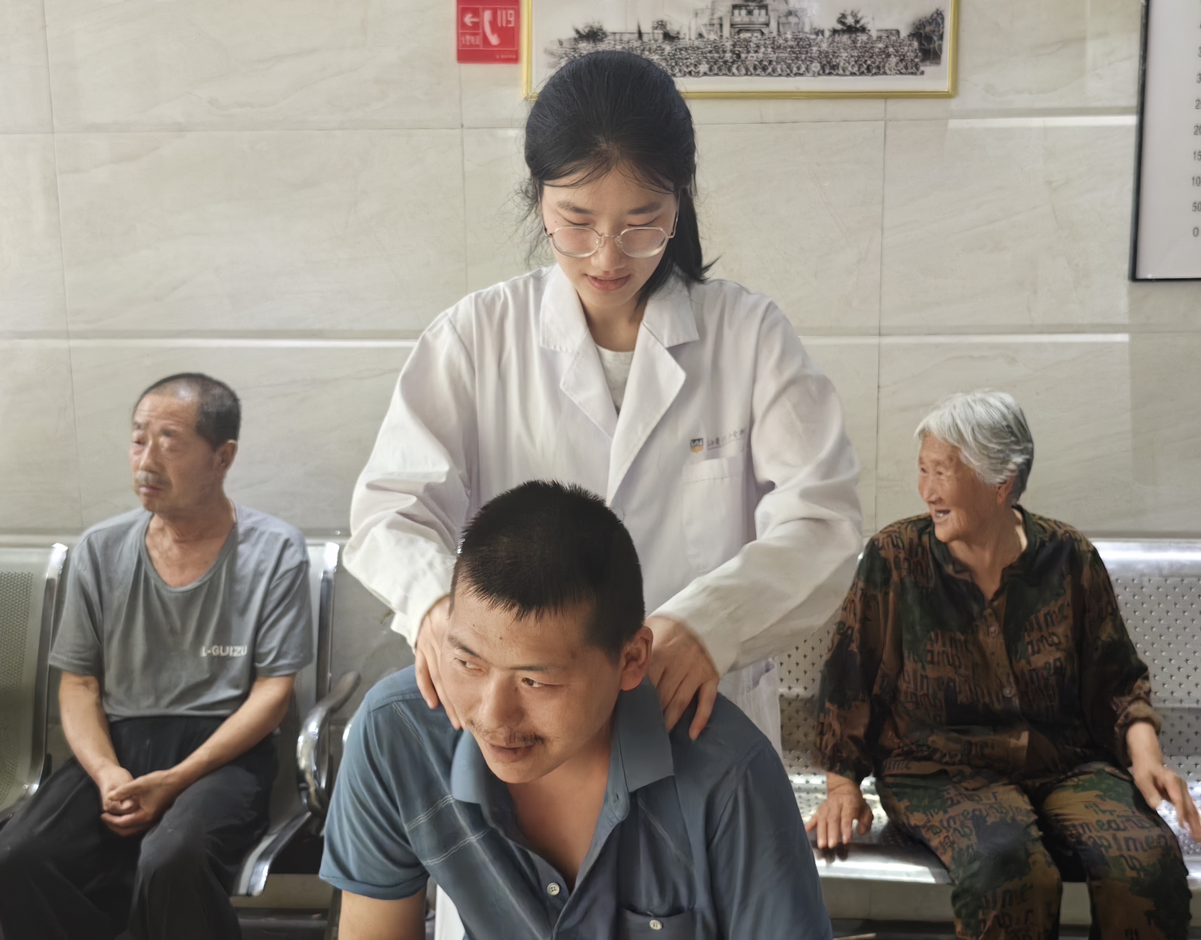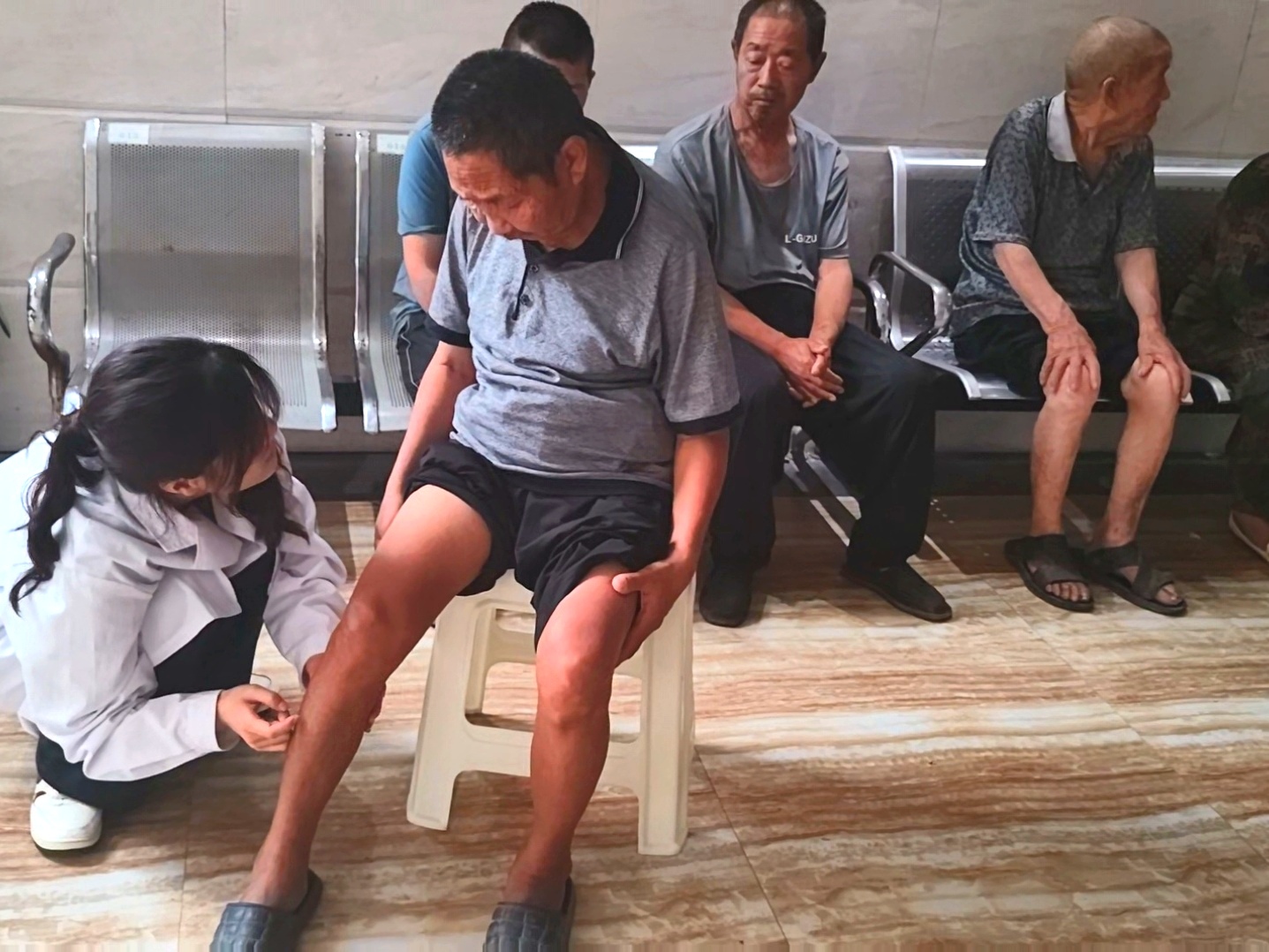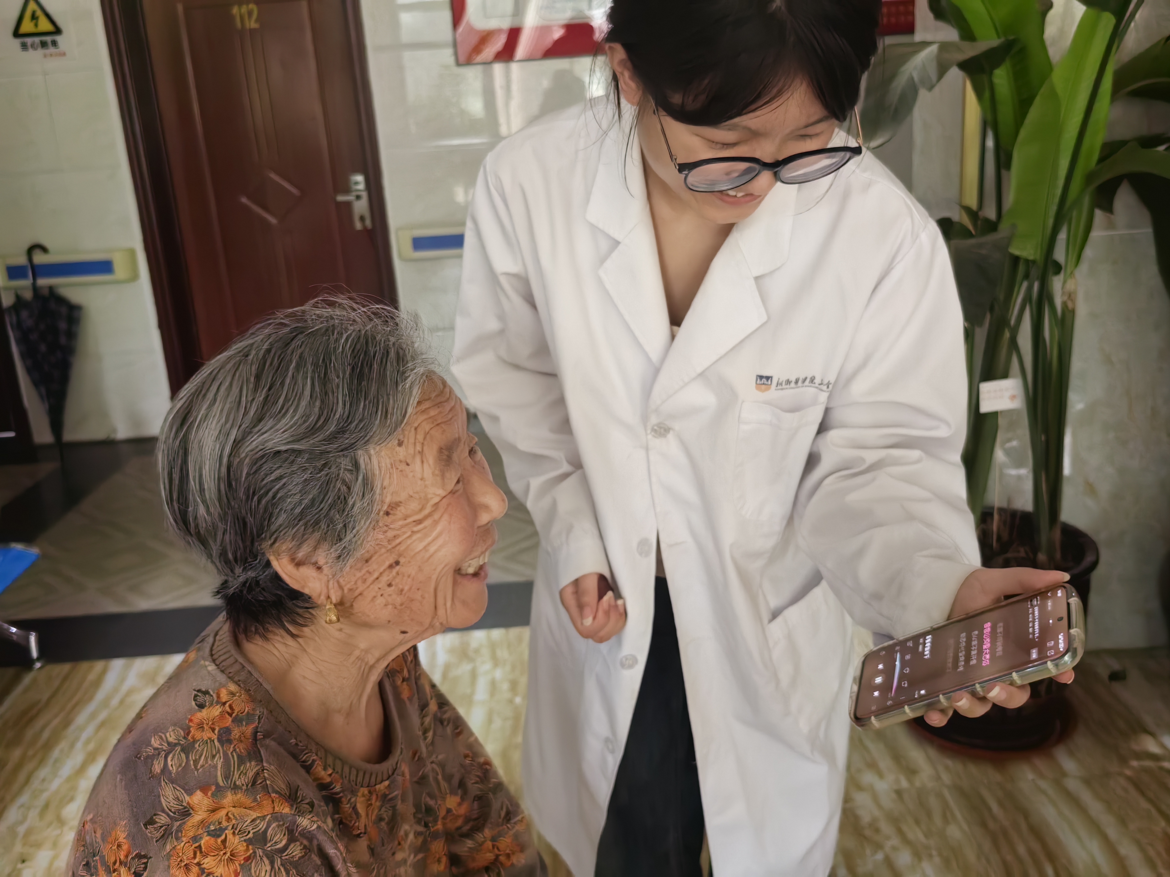 活动伊始,张梦晴运用康复医学手法,为老人进行关节活动度、肌肉力量等专业评估,针对部分老人的静止性震颤、肌肉紧张问题,现场示范颈部旋转、手腕摆动等简易康复动作,“每天三组,缓解僵硬”的贴心指导,让理论知识从课堂“落地”到老人日常。岳静茹同步开展血压测量,边记录数据边叮嘱:“血压偏高要按时服药”,科学用药理念随话语温暖传递。