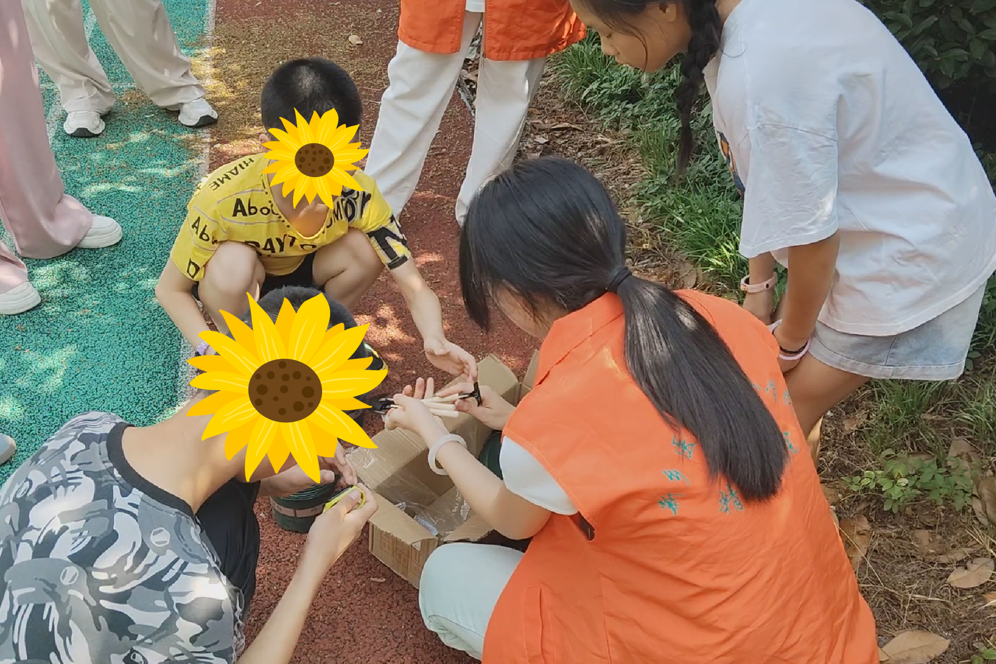 本次活动还特别设置了“向日葵计划”生命教育课。在绿草如茵的操场上,每个孩子面前都摆放着特制的种植工具包——防滑手套、迷你铲子、放大镜,每样工具都根据孩子们的握力特别改良。“这颗像月牙的种子会开出怎样的花?”志愿者刘欣欣的问题引发了孩子们的好奇心。在朱雨梦的引导下,孩子们通过触摸感受种子的纹路,脸上浮现出惊喜的神情。活动最后,孩子们将写有自己名字的标签插在花盆里,期待着小生命的萌发。