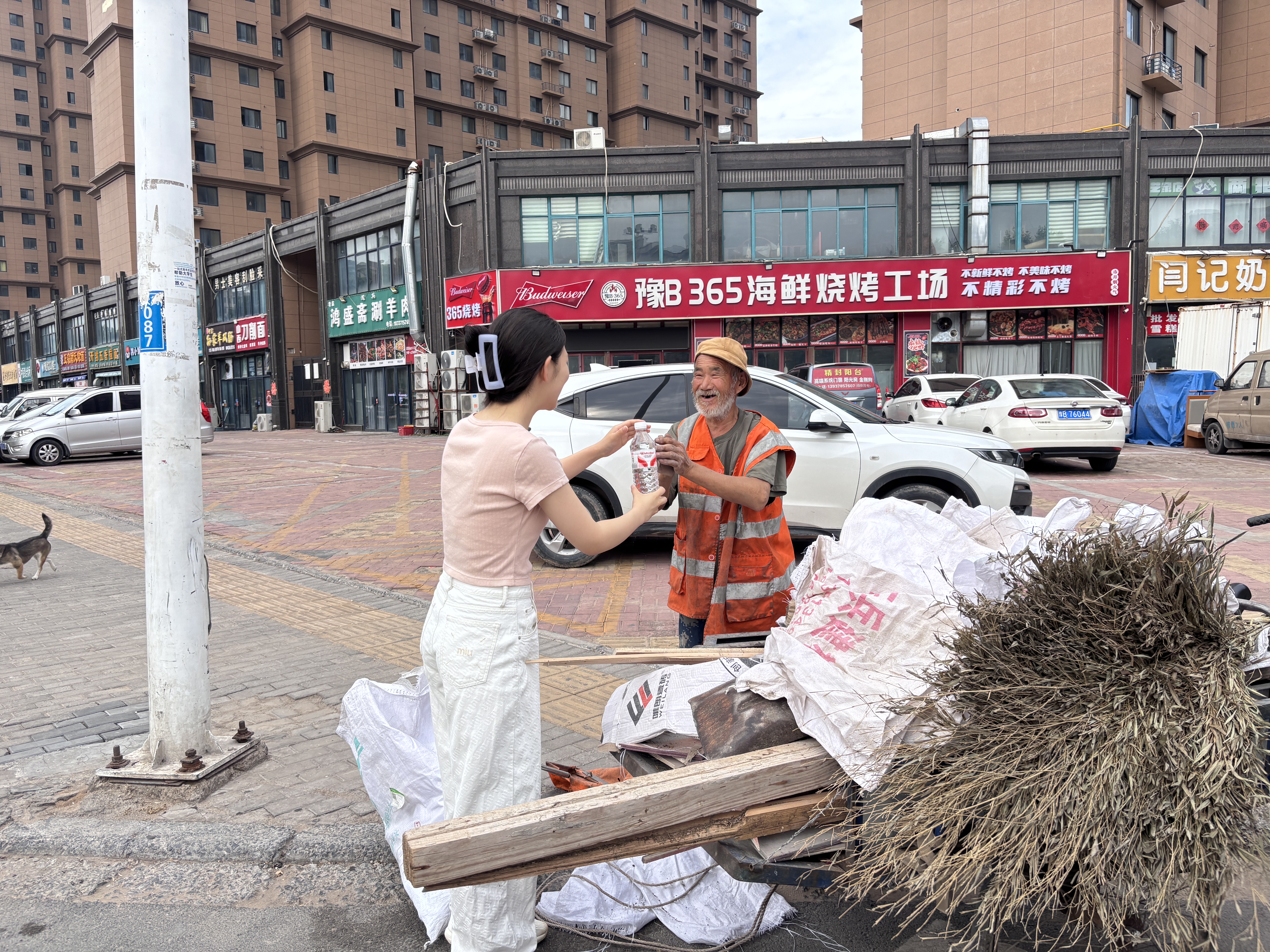 活动现场,志愿者们带着满满的关怀,将一瓶瓶承载着敬意与感恩的瓶装水送到了默默奉献的环卫工人手中。烈日炎炎,这些饮用水成为了环卫工人消暑解渴的“及时雨”。志愿者们还与环卫工人亲切攀谈,仔细聆听他们讲述日常工作的点点滴滴,深刻体会到了他们工作的艰辛与不易。