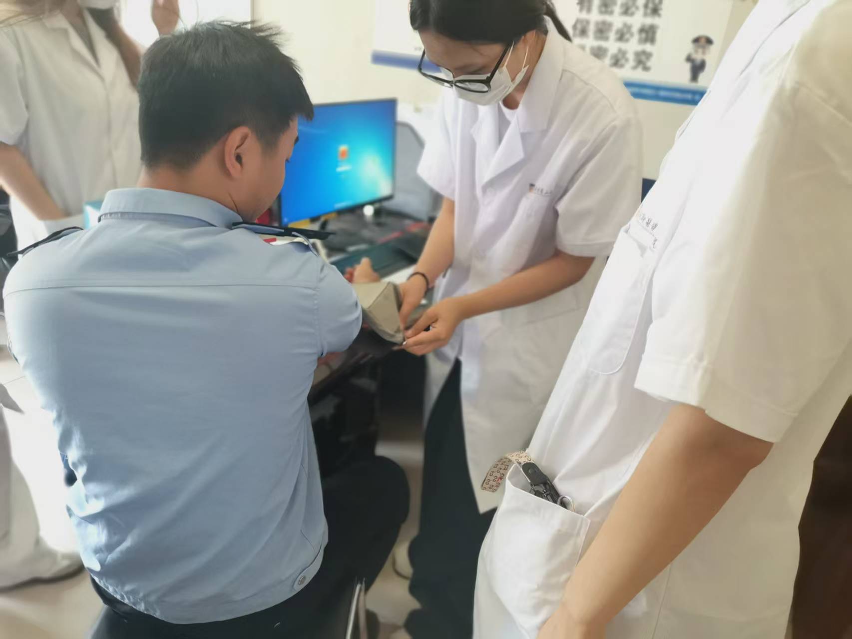 活动现场井然有序、暖意融融。在健康诊疗区,志愿者们与警务人员亲切交流,凭借娴熟的专业技能,为他们细致测量血压,并认真记录各项数据。针对血压偏高的警务人员,志愿者结合其长期值班熬夜、饮食不规律等职业特性,耐心讲解科学作息与合理膳食知识,助力他们改善健康状况。