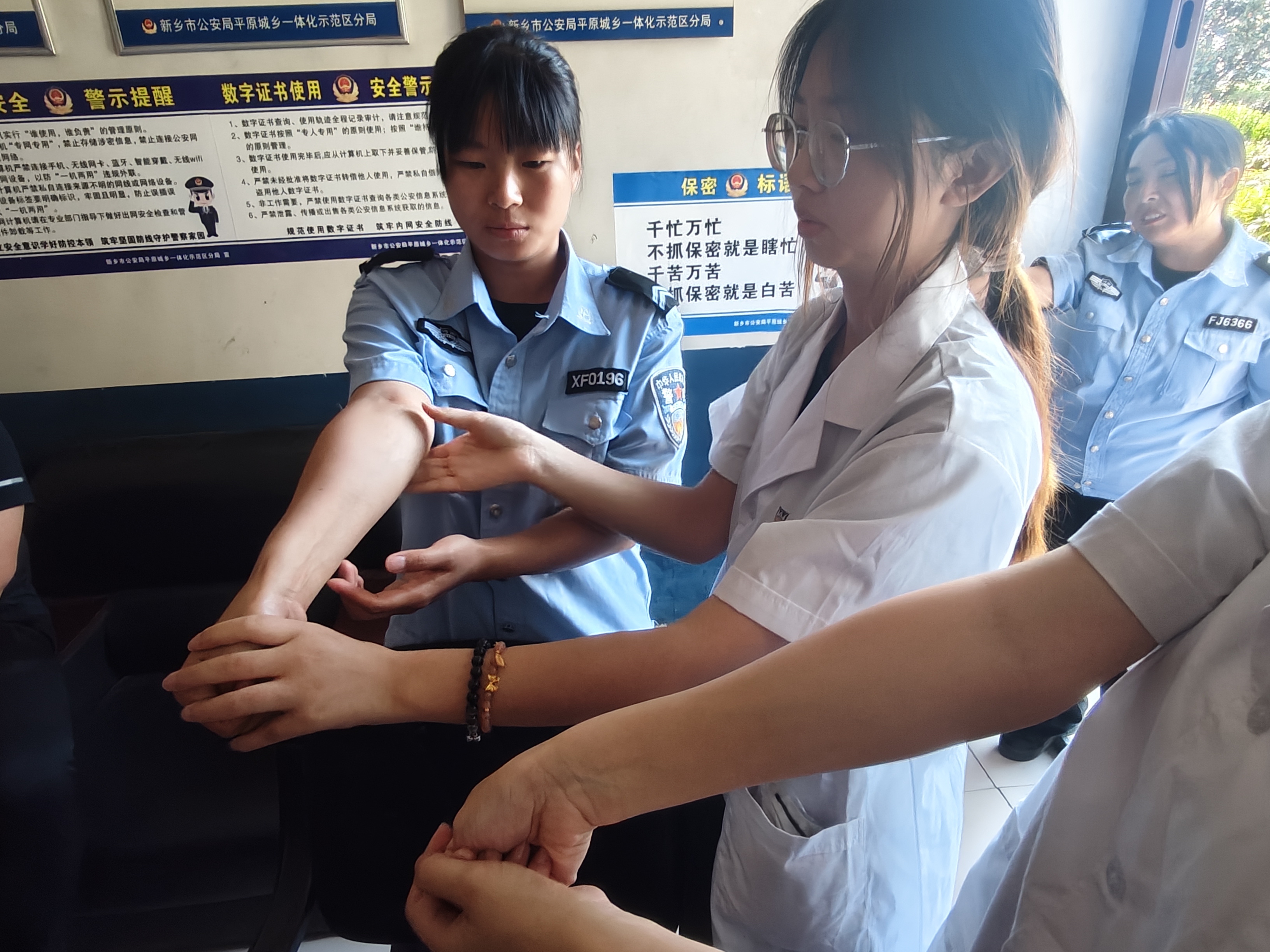 6月15日上午,晴空万里,微风送爽,一场充满温情的“夏日脉动·健康行”社会实践活动在原阳县派出所火热开展。此次活动由夏日“脉”动健康行小组悉心筹备,聚焦夏日健康需求,旨在为辛勤工作的警务人员提供专业医护诊疗、贴心饮水补给和实用健康指导,以实际行动致敬坚守一线的守护者。