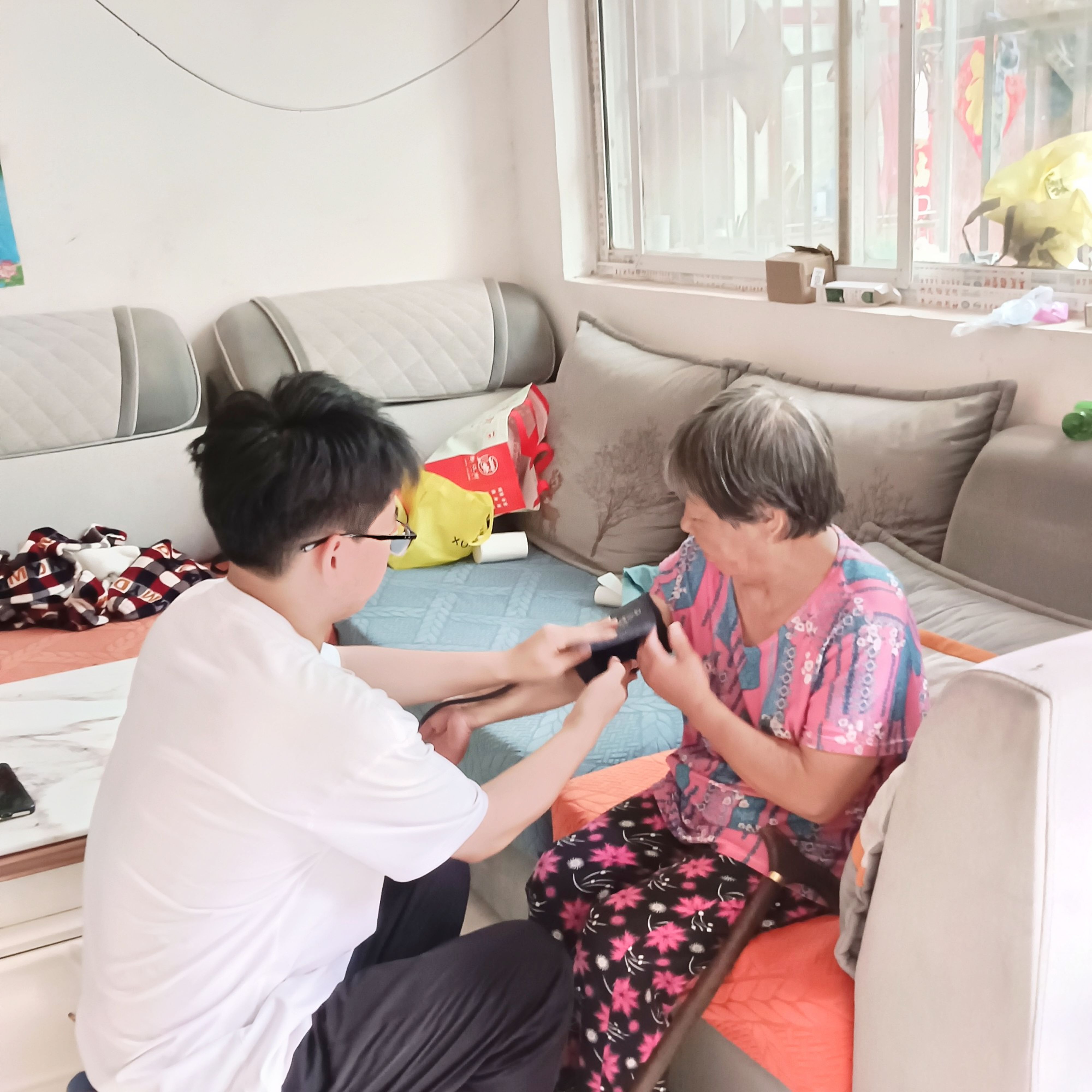 除了急救知识科普和助农帮扶,实践团还将温暖送到了村民家门口。他们设立免费血压测量点,为村民提供健康检测服务。成员们手持血压计,耐心细致地为每一位前来测量的村民进行血压测量,并详细记录数据。对于血压异常的村民,成员们会结合他们的生活习惯,给予饮食调理、运动锻炼等方面的专业建议,还会反复提醒村民及时到医院进行进一步检查和治疗。业贴心的服务赢得了村民们的广泛好评,也让村民们感受到了社会的关爱与温暖。