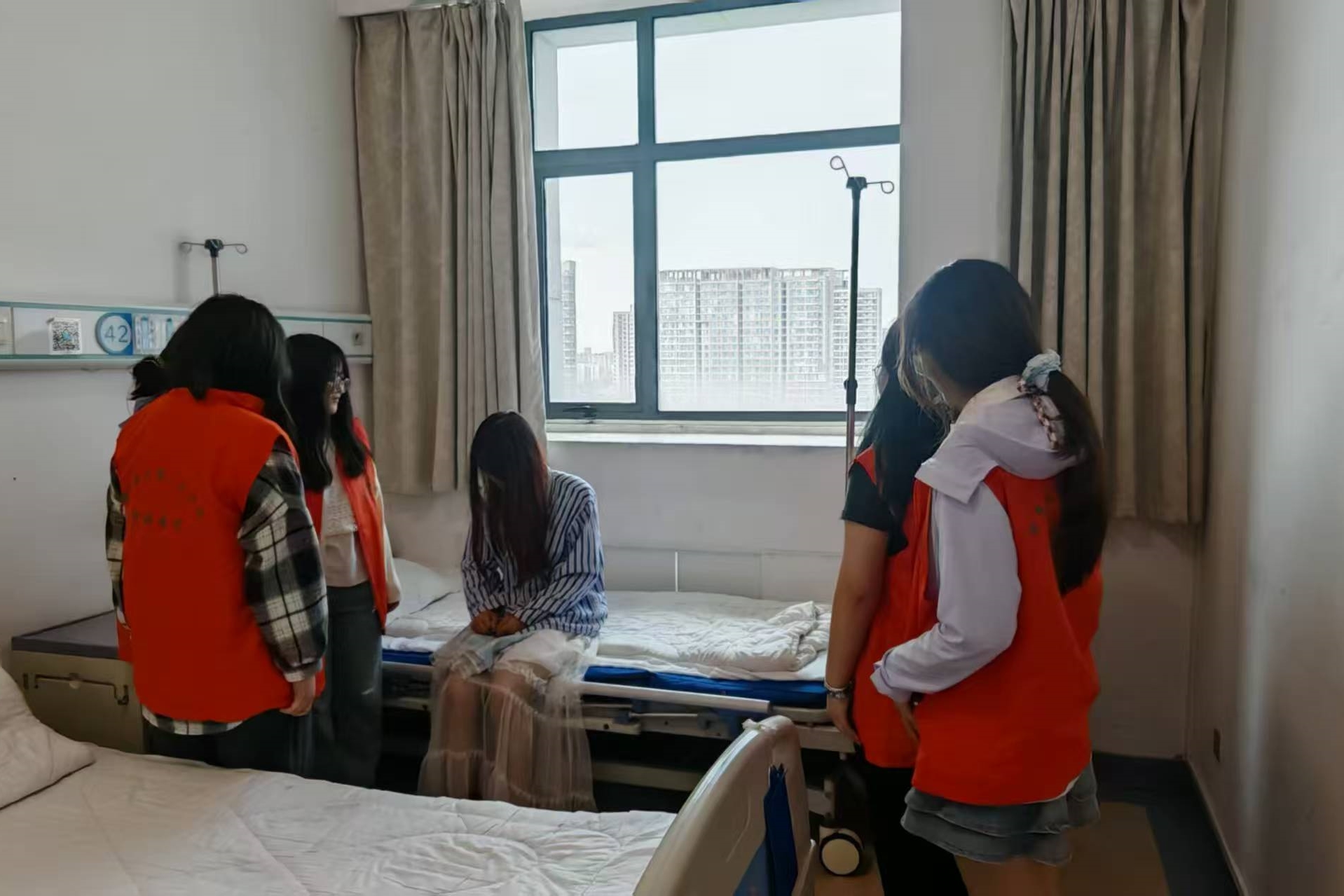在志愿者的帮助下,住院部的氛围则多了份温暖陪伴。志愿者们协助医护整理病房,为患者递送生活用品,陪患者唠家常,听他们讲述病情与心情。志愿者董缘发现患者因紧张忘记带检查单,一路小跑帮忙取回;志愿者陈薪羽在陪诊时,默默记下老人常用药名,方便后续协助购药。这些细微又贴心的举动,让医患切实感受到真诚关怀。
