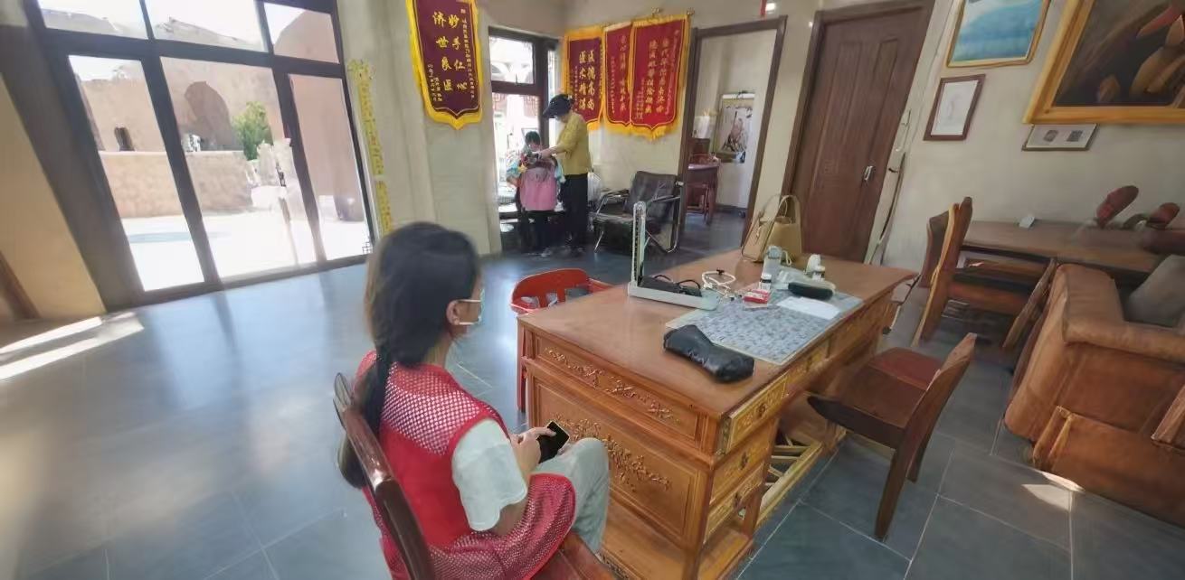 走廊里,志愿者臧文涵正推着轮椅护送一位行动不便的老奶奶去做检查,一路上轻声聊着家常:“奶奶,您这腿是老毛病了吧?平时可得多注意保暖……” 原本紧张的奶奶渐渐放松下来,嘴角露出了笑容。