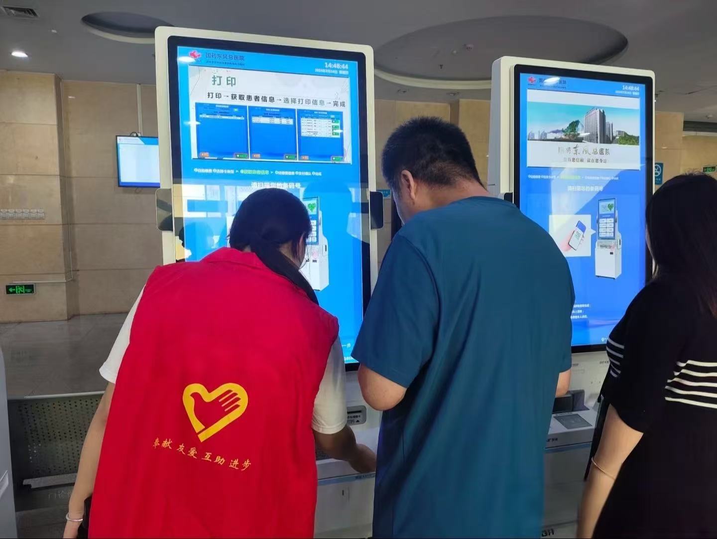 这些看似琐碎的举动,却像一缕缕阳光照进患者的心里。“医院跟迷宫似的,我从乡下赶来,光找挂号处就绕了两圈,多亏这闺女领着我跑前跑后。” 一位提着布袋的大娘握着志愿者的手,连声道谢。来自县城的张先生也感慨:“现在的自助机太先进,我们这些上了年纪的人真玩不转,志愿者手把手教我操作,还帮我预约了检查时间,真是解决了大问题。”