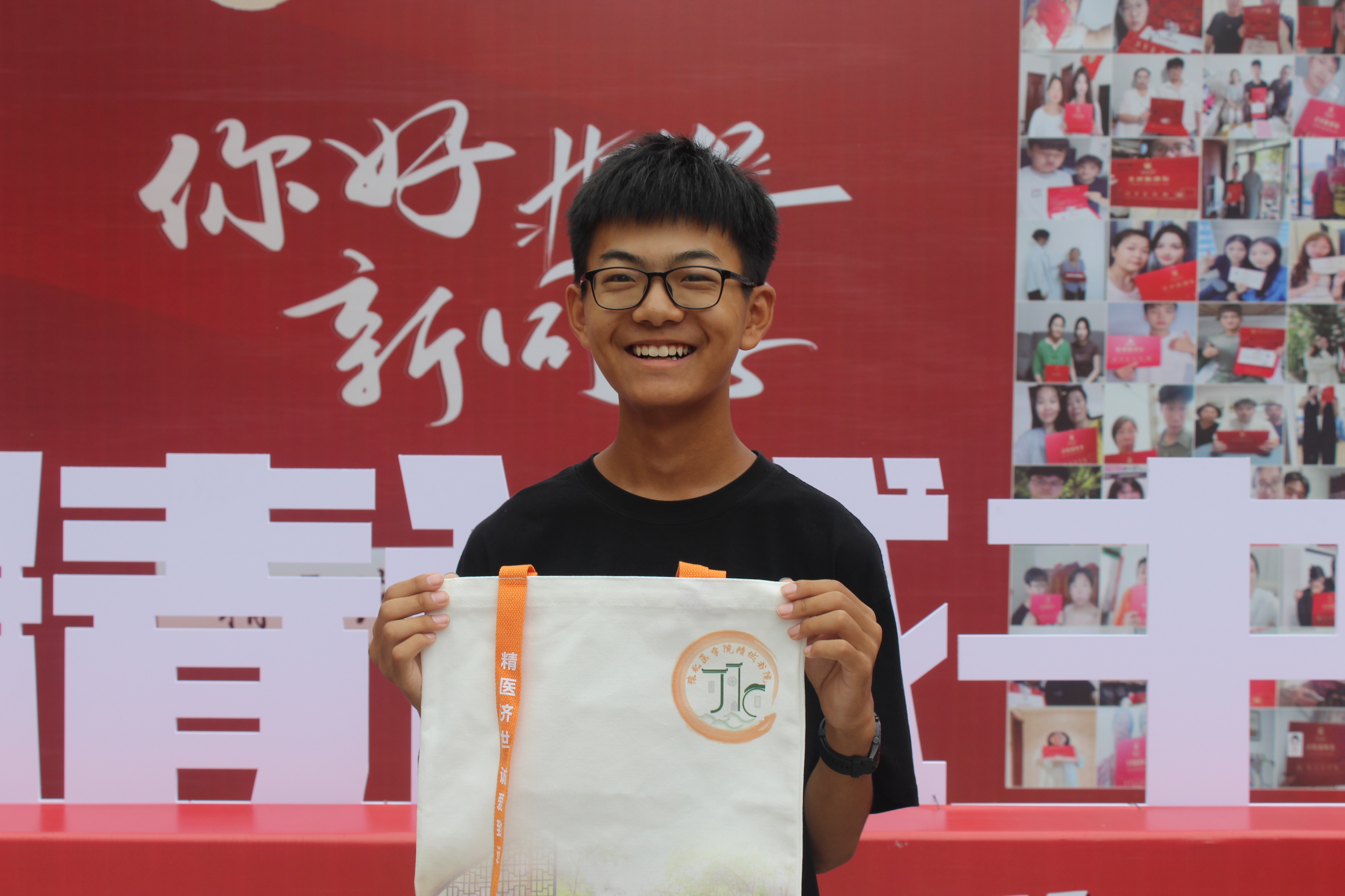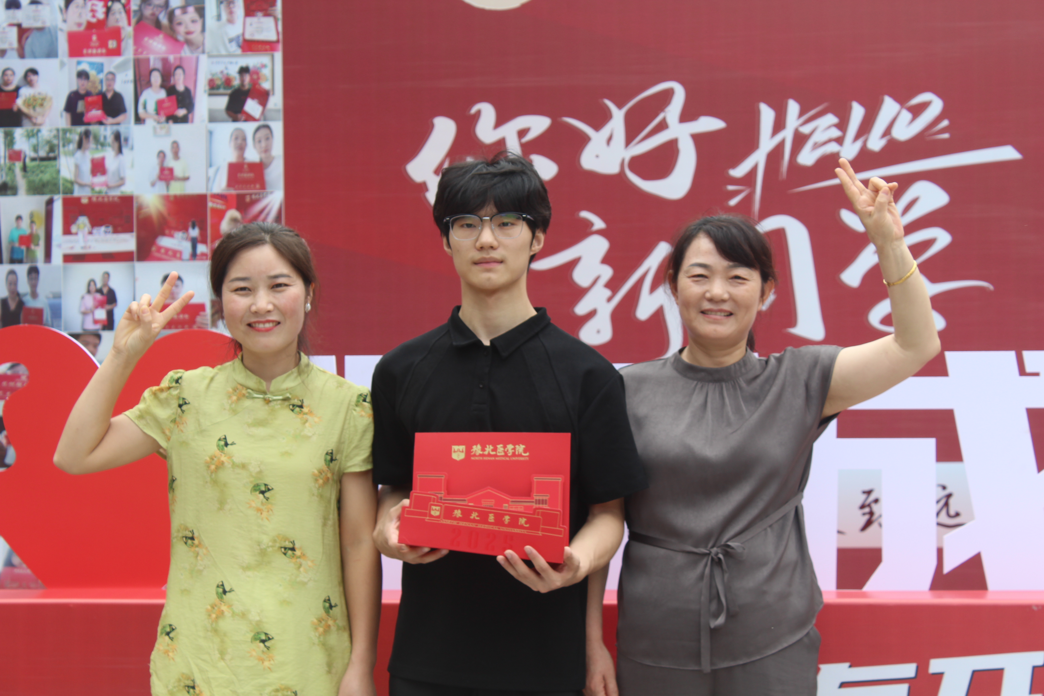 书院广场的“你好,新同学”合影留念墙格外醒目,既展示“我与录取通知书合个影”初遇剪影,更以“精医济世,诚爱致远”院训传递育人初心。志愿者引导下,新生手持录取通知书与家长共同签名,写下“学好医学知识,守护家人健康”等期许。