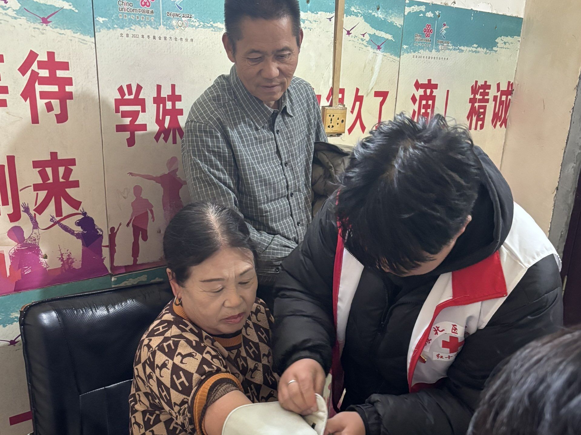活动现场,团队志愿者分为健康检测组与康复治疗组,为村民提供了全方位的健康服务。健康检测组配备了专业设备,为居民免费测量血压、血糖,并建立健康档案,针对检测出的异常指标提供个性化建议。康复治疗组由康复治疗学专业的志愿者组成,为患有肌肉劳损、关节疼痛等常见病症的村民提供推拿治疗,通过手法调理缓解疼痛、改善身体机能。