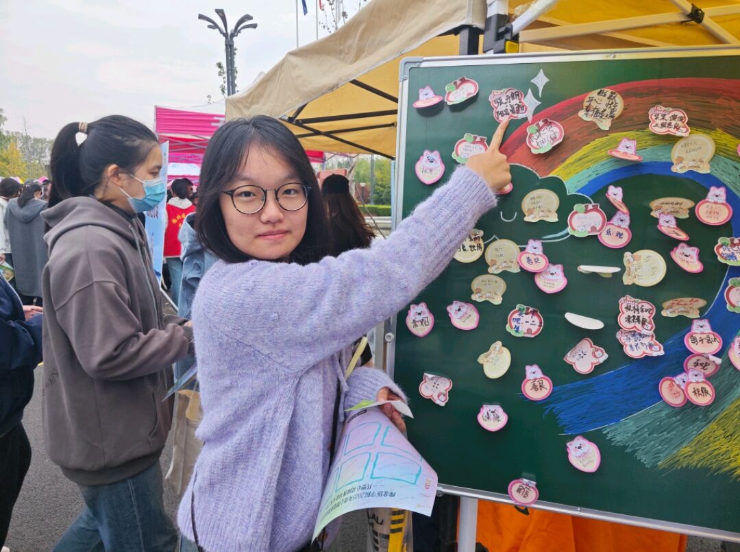 “最近在准备执业医师资格证复习,压力特别大,刚才把‘复习焦虑’写在便利贴上,打出去的瞬间感觉心里的紧绷感都松了!”2023 级预防医学专业的王浩同学擦着额头的汗笑道。