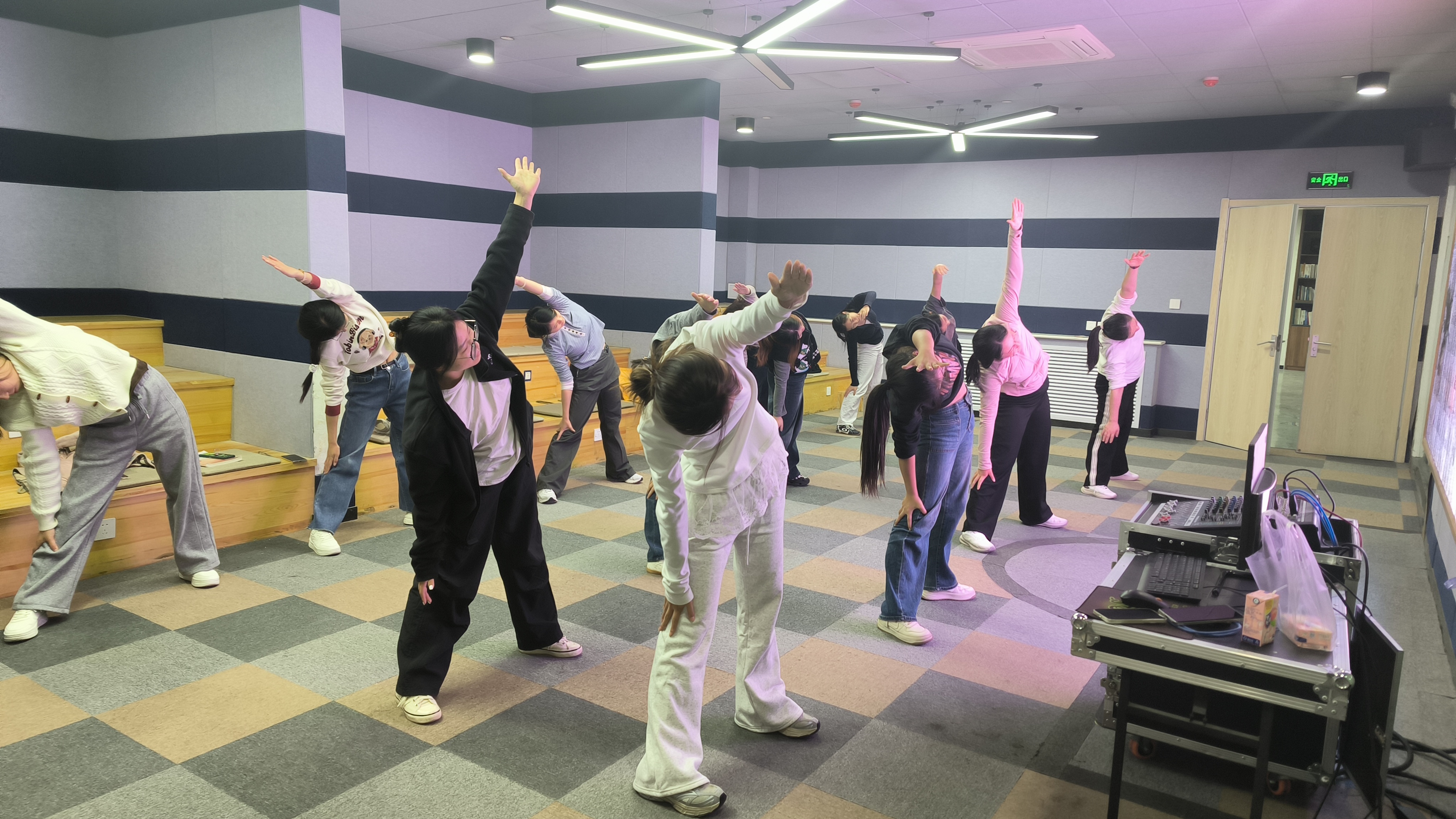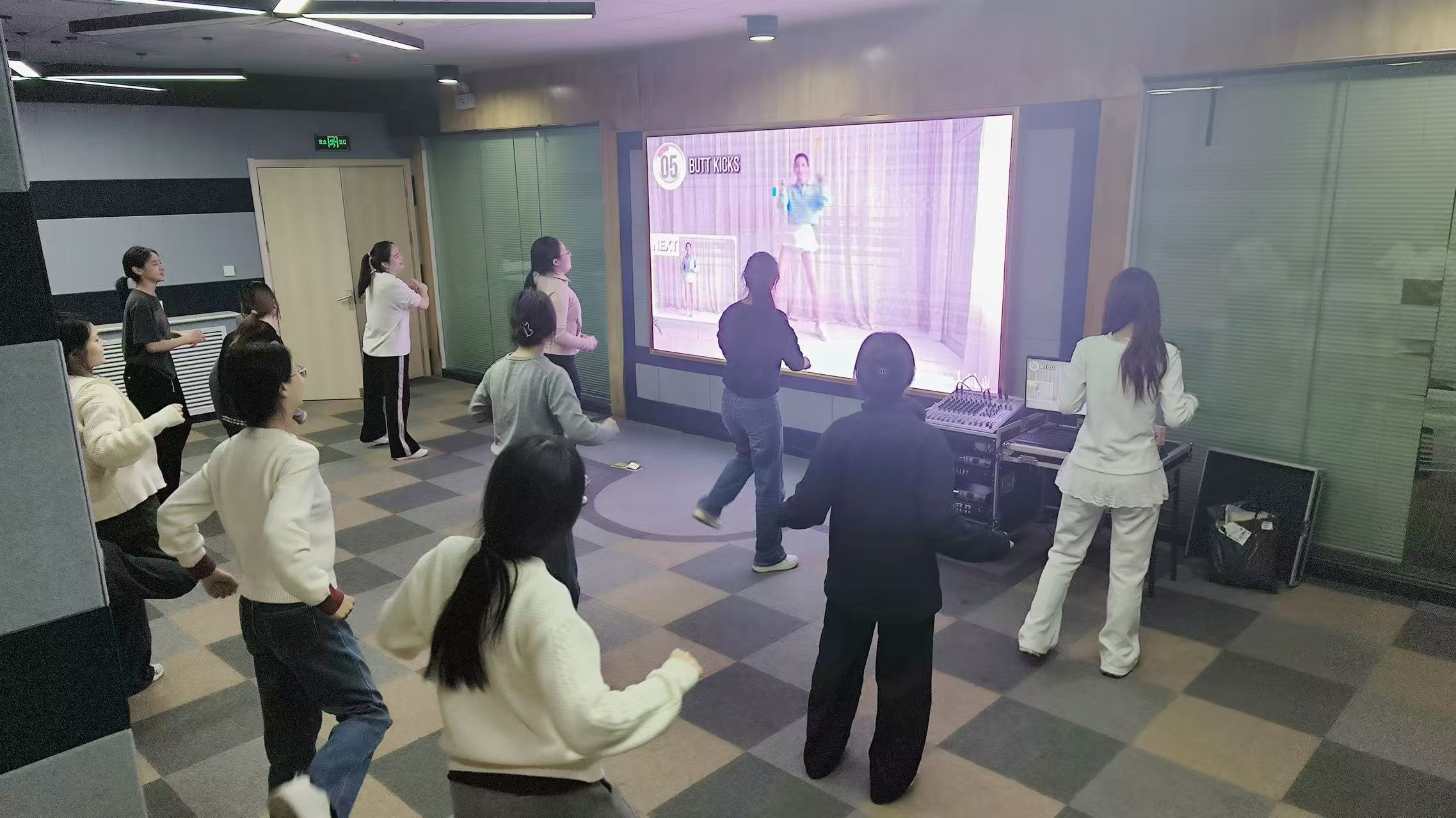 高清屏幕上,健身博主的每一个伸展、跳跃动作都标注着清晰的发力要点,动感旋律刚起,不少学生便不自觉地舒展身体。“这是我关注半年的博主!以前自己练总偷懒,现在书院组织集体活动,根本不好意思停下。”刘治暄同学擦着额头的汗珠笑道,眼神里满是兴奋。