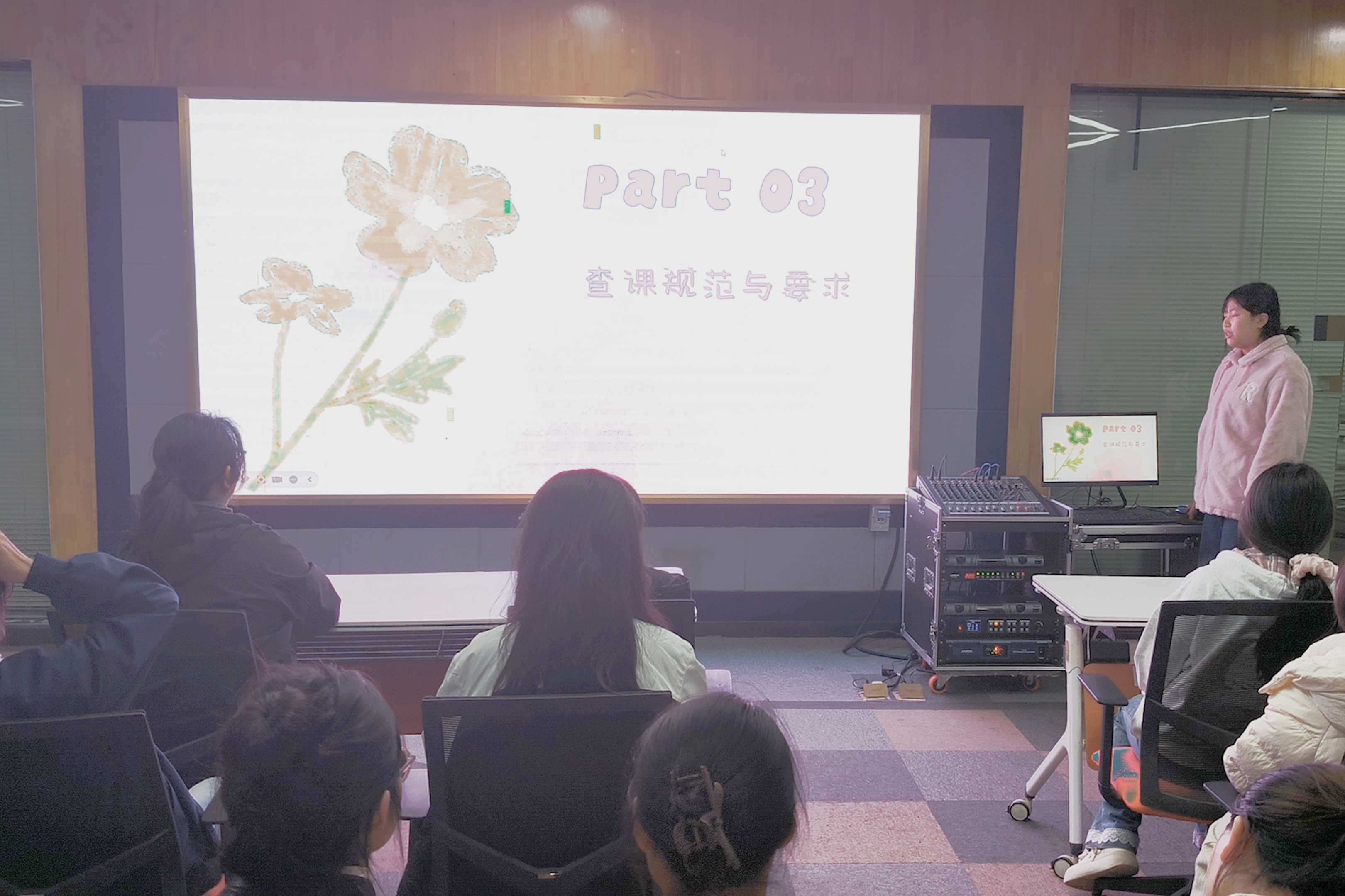 朱靖贤主导的“规范检查促学风·携手服务共成长”专题,通过标准化流程演示与典型案例分析,系统构建查课查寝工作规范体系。同时,以小组研讨形式鼓励学员分享检查经验,共同优化工作流程,形成了一套可复制、易推广的学风建设工作模板。