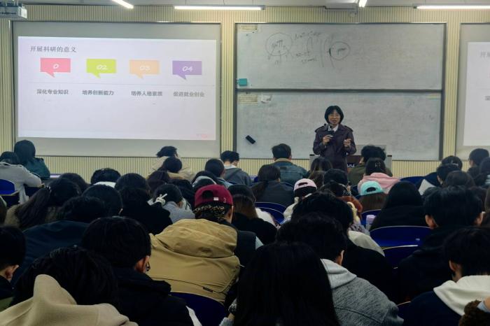 为帮助大学生搭建科研认知桥梁,破解科研入门困惑,提升创新实践能力,11月6日下午,精诚书院于谨学楼 A101 教室成功举办 “大学生如何开展科学研究” 专题科研讲座。本次讲座特别邀请到我校基础医学院党总支书记兼常务副院长苗莹莹担任主讲人,精诚书院师生代表共300人齐聚现场,共同探寻科研探索的路径与方法。