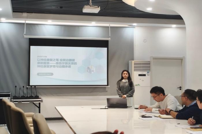 康复治疗学专业的阿依拉莱·柯迪力以《以神经康复之笔 绘就边疆健康新图景——维吾尔族女孩的神经康复梦想与边疆承诺》为主题,结合自身民族背景,提出毕业后返乡投身边疆神经康复事业,构建独具特色的神经康复诊所。