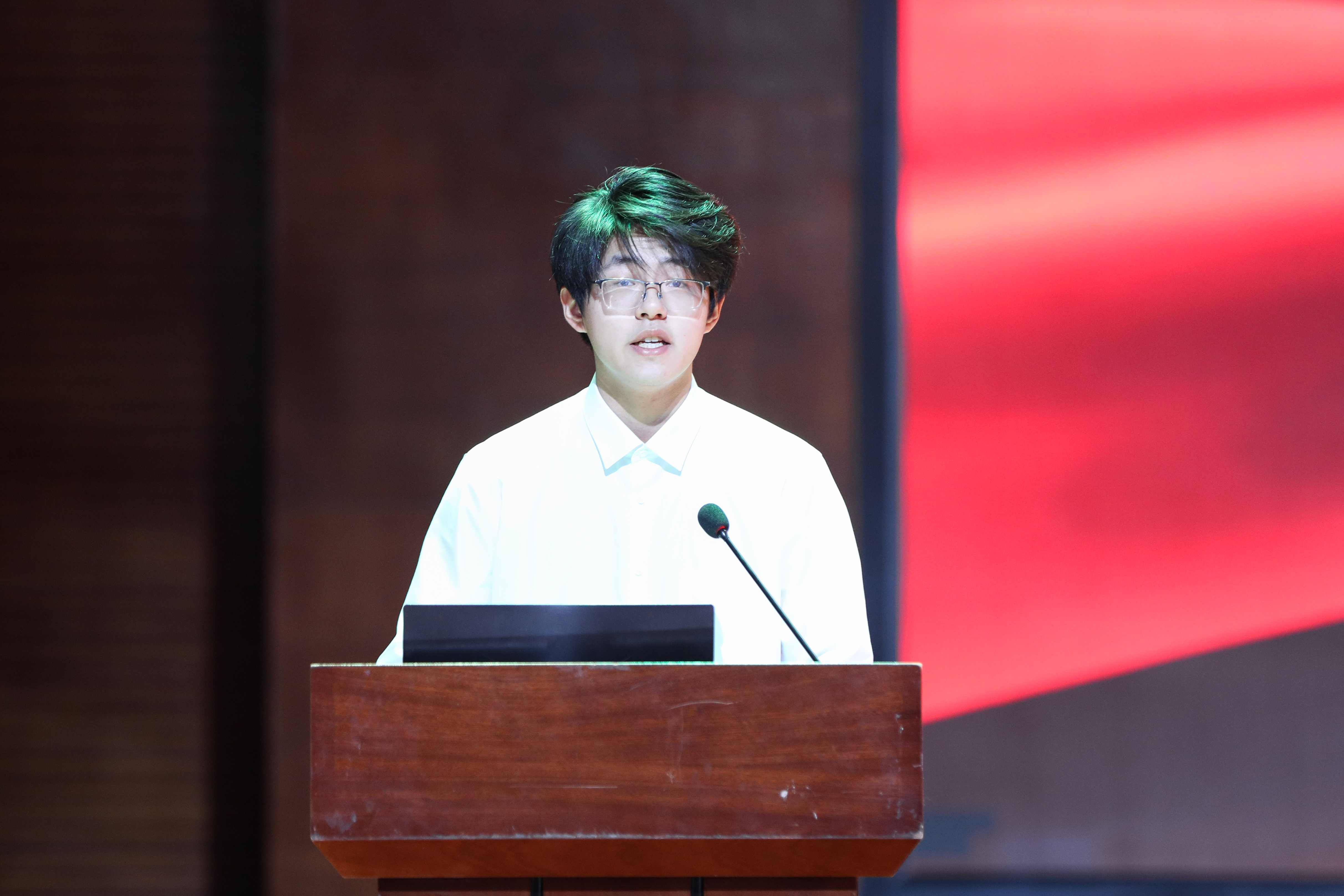 学员代表张乙博发言表示,将倍加珍惜培训机会,严格遵守培训纪律,潜心钻研党的知识,力争以优异成绩完成培训任务。发言结束后,2024级康复治疗学陈卓带来演讲《我们共同的姓氏,叫中华》,深情诠释了新时代青年的家国情怀与使命担当,引发全场学员强烈共鸣。